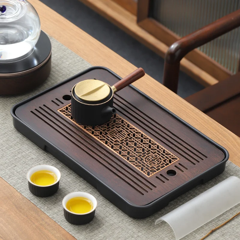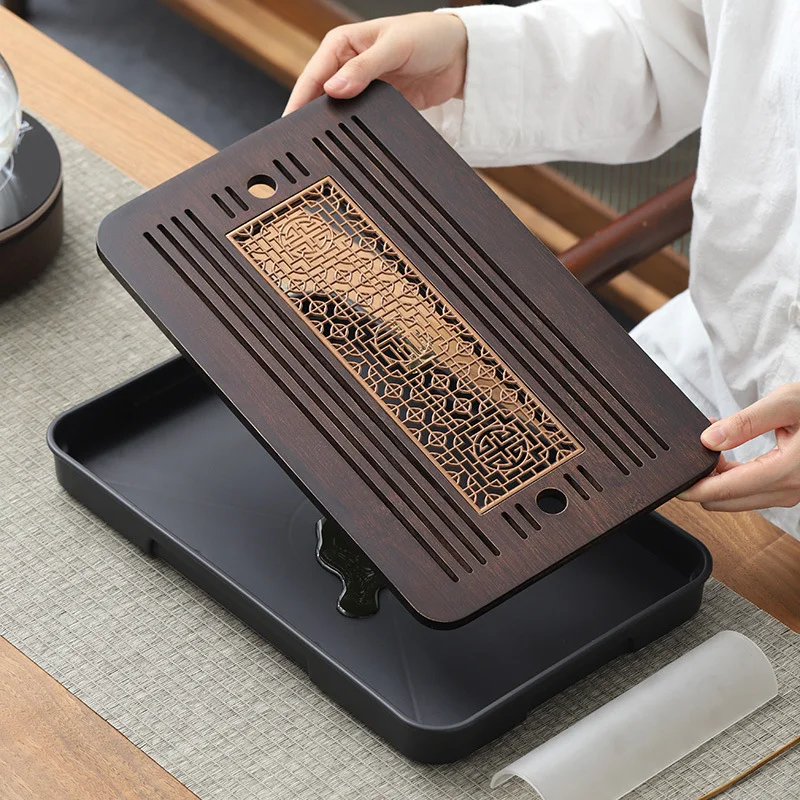 Компактний піднос із темного бамбука з чорним внутрішнім піддоном. Практичний, легкий та зручний для гунфу-чаю й повсякденного використання. Мінімалістичний дизайн і натуральна фактура створюють атмосферу чистоти та акуратності під час чаювання.