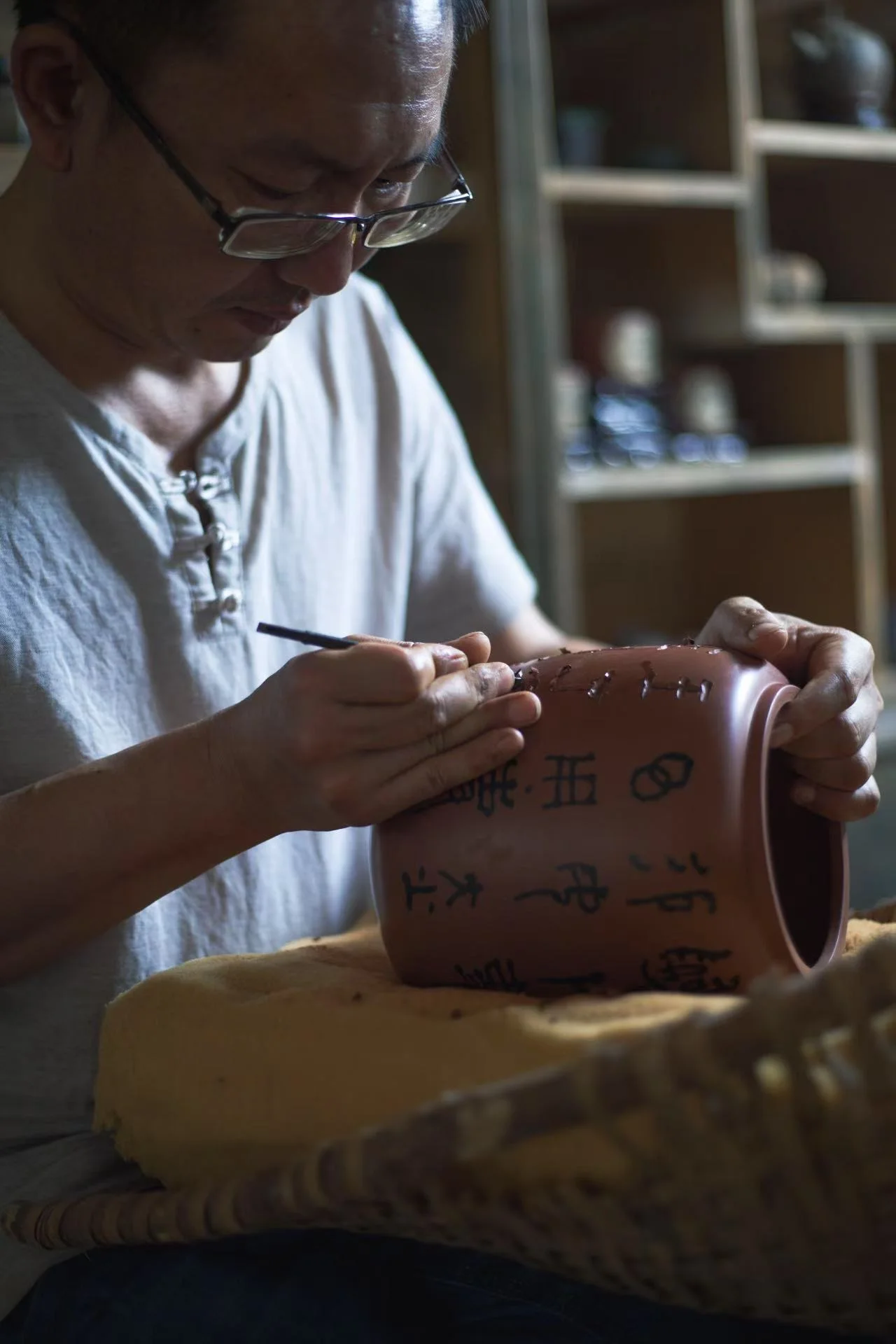 Майстер глибоко занурений у традиційну каліграфію та класичні мистецтва, що знаходить відображення у декорі його робіт. Різьблення сприймається не як текст для читання, а як ритм, композиція та образ, які створюють відчуття культурної памʼяті й звʼязку з давніми традиціями.