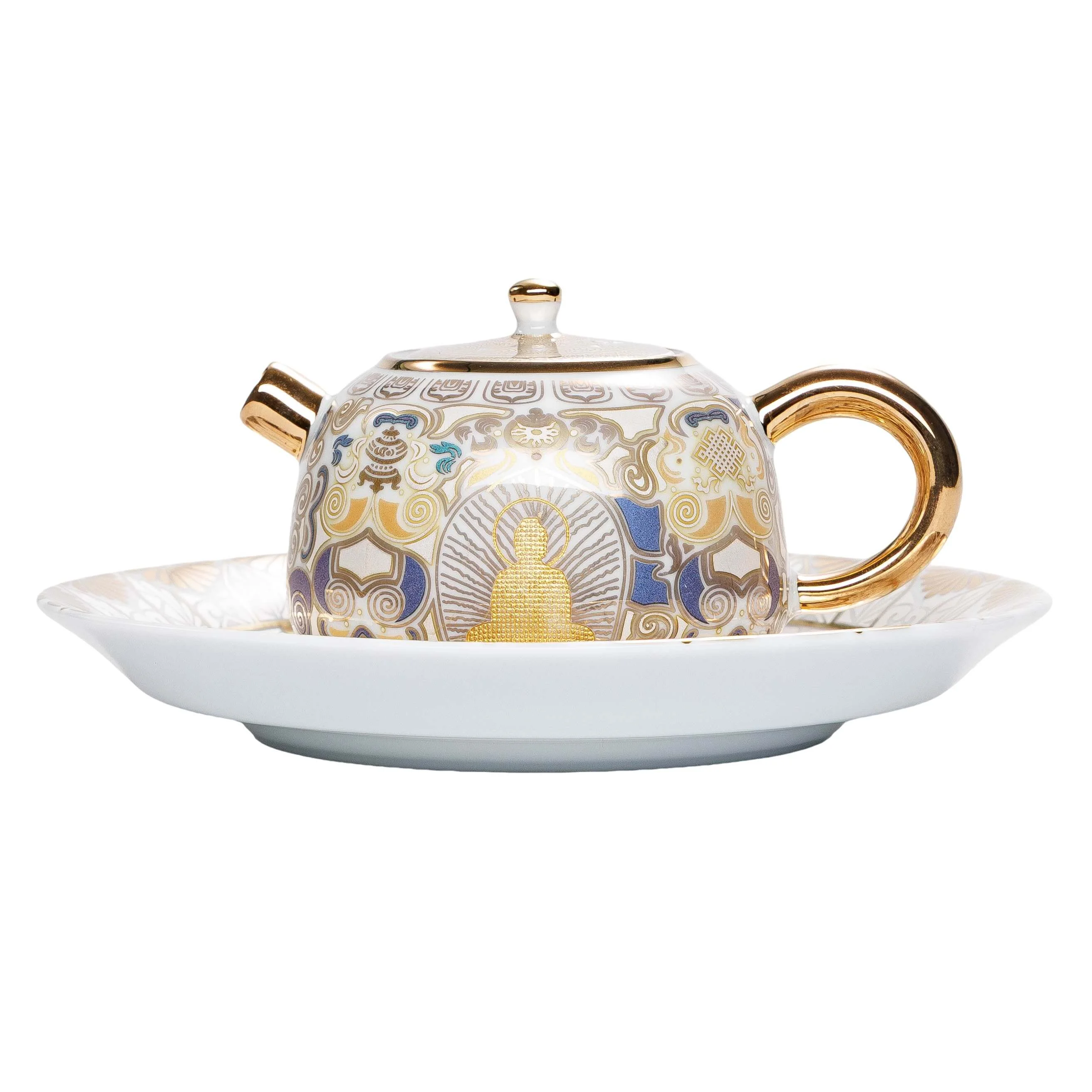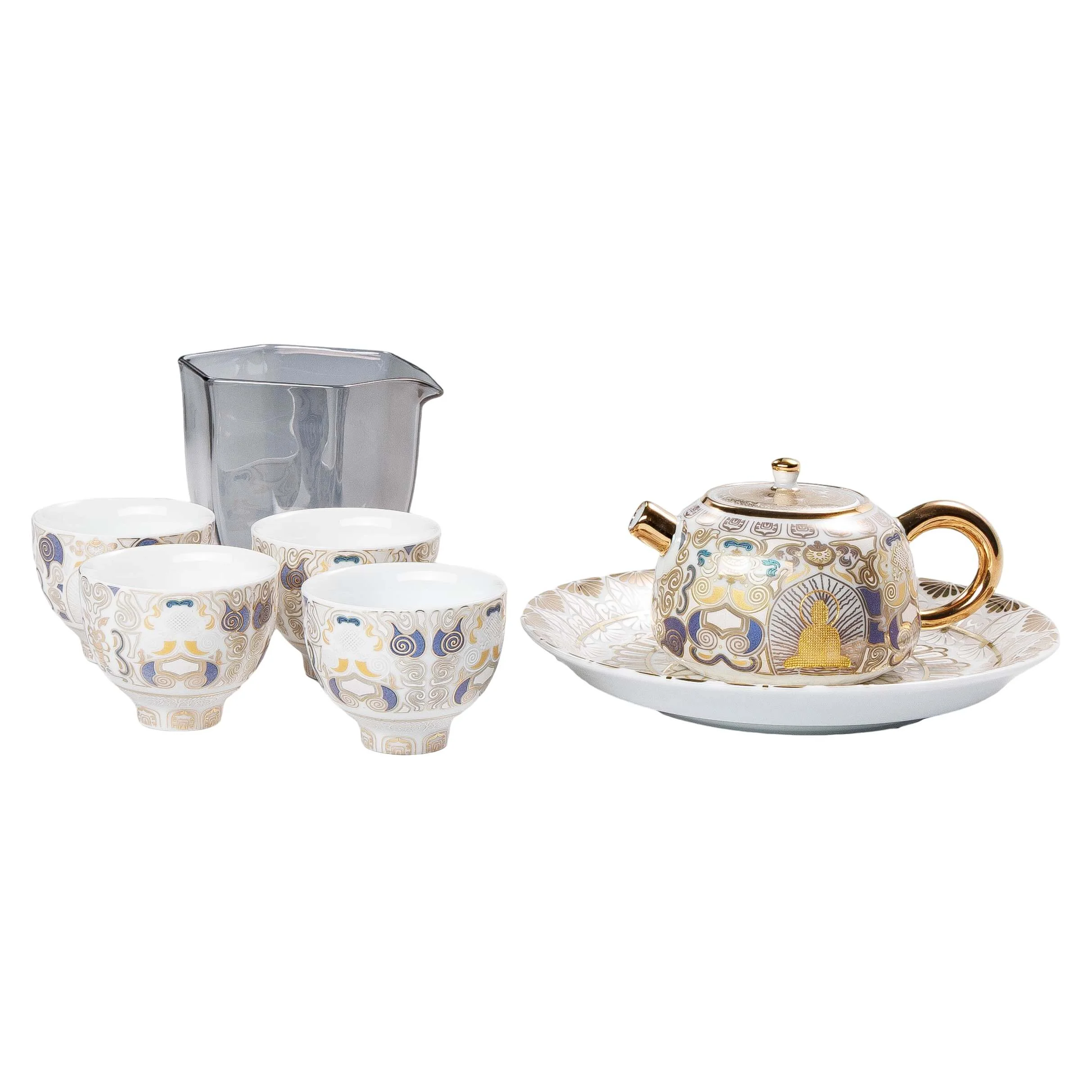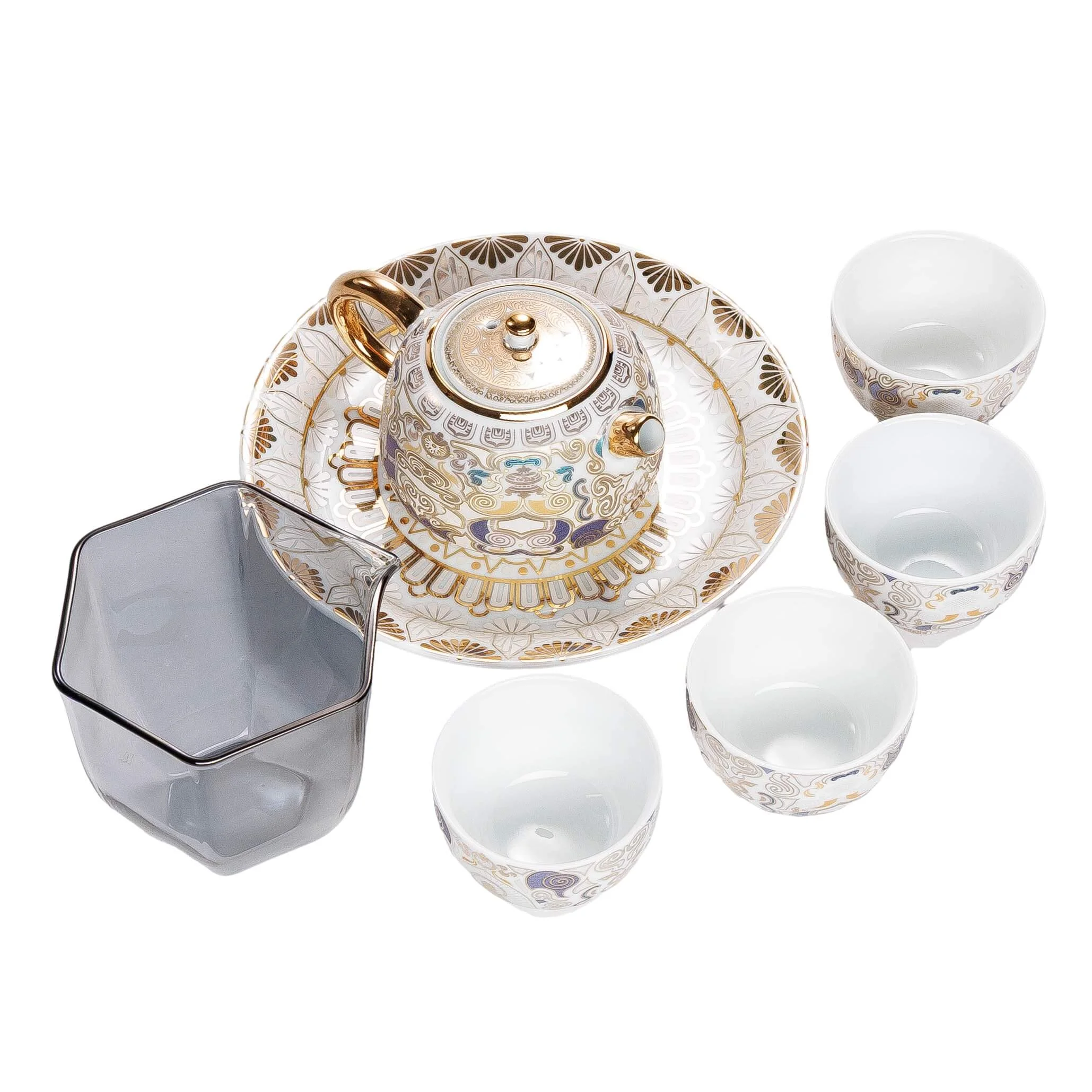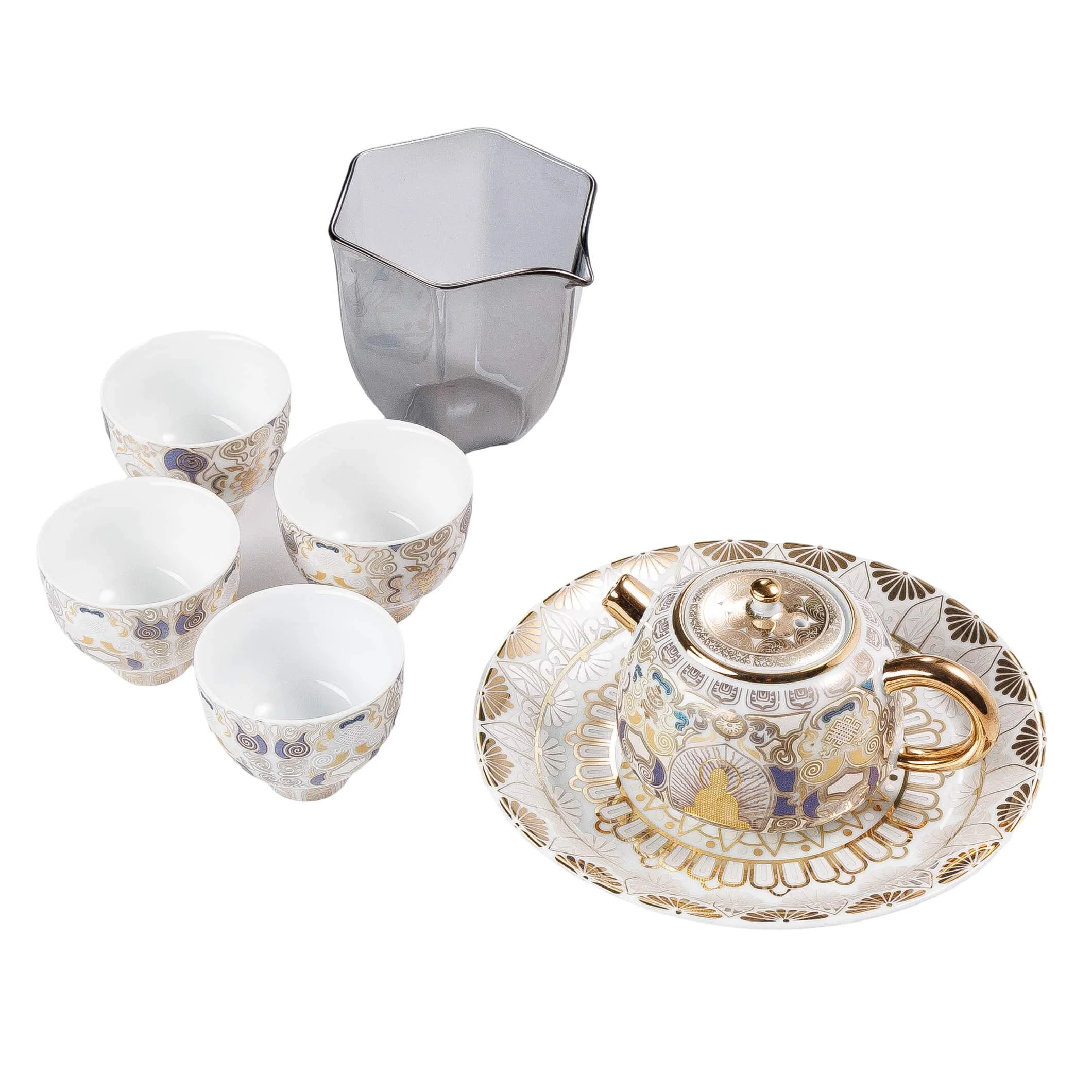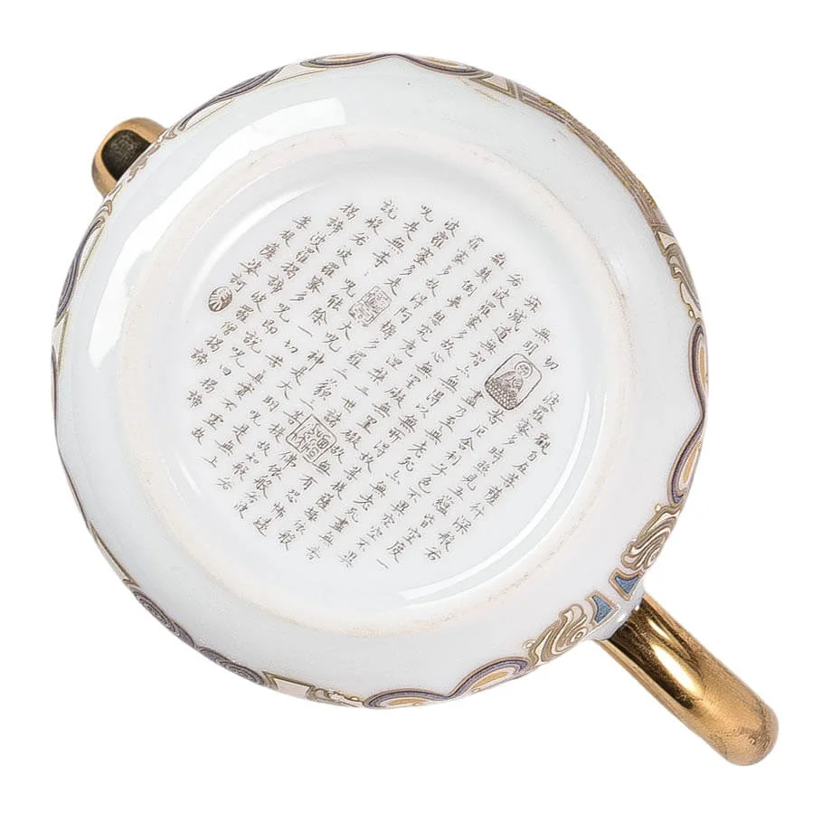 Чайний набір для чаювання з білої порцеляни з елементами позолоти «Золота гармонія» — подарунковий комплект у стриманій східній естетиці, створений для красивого домашнього чаювання та прийому гостей. Світла порцеляна підкреслює чистоту форм, а тонкий орнамент із золотими акцентами надає набору урочистого, але водночас спокійного вигляду.