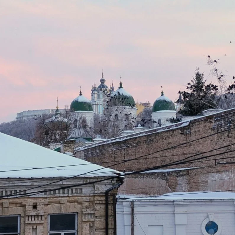 Над золотим мереживом Старого Подолу велично здіймається Андріївська церква, наче невагомий корабель, що застиг на гребені зеленого пагорба. Її стрункі башні, оздоблені небесною блакиттю та золотом, розчиняються у вишині, поєднуючи земне зі святим.