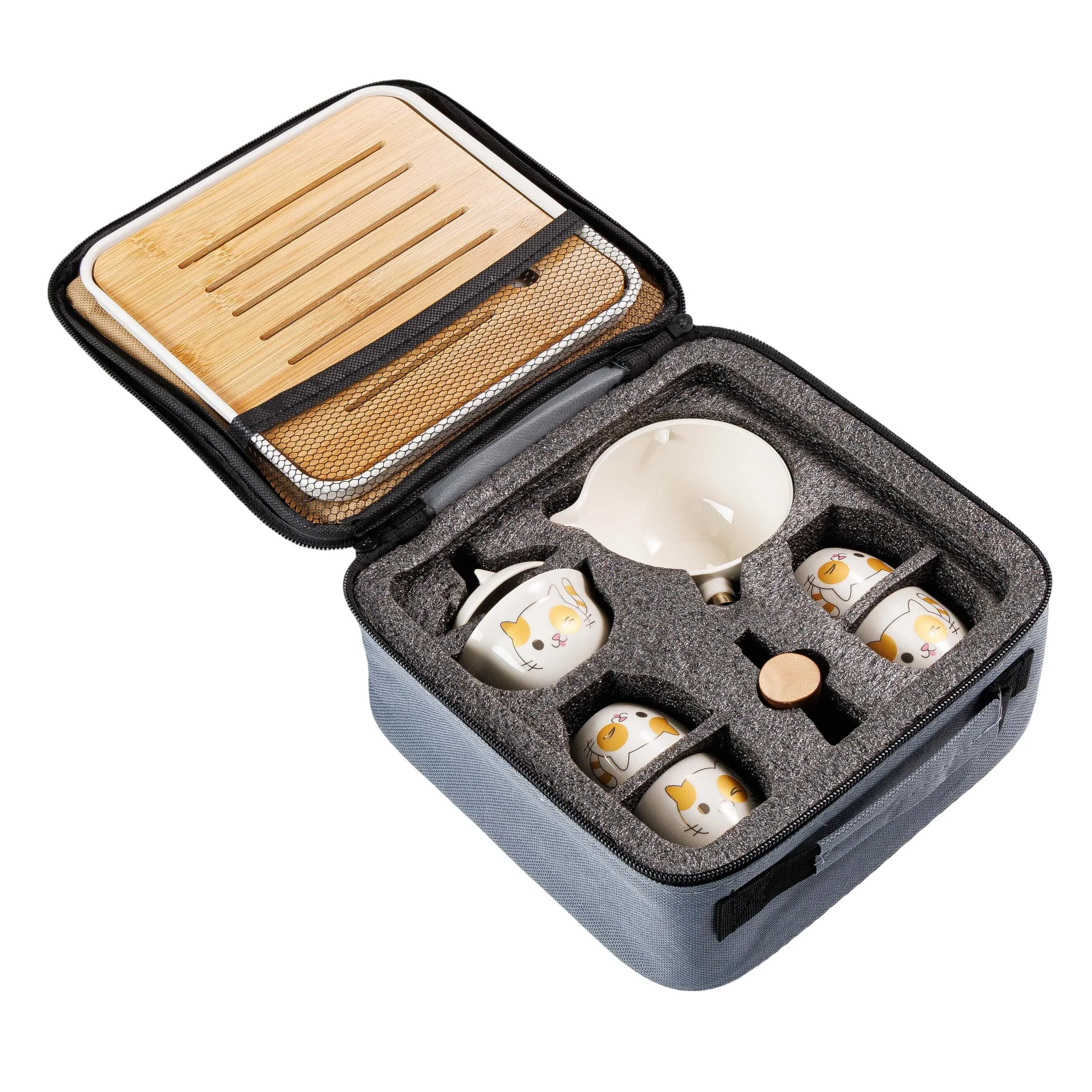 Дорожній набір посуду для чаювання "Щасливий кіт"