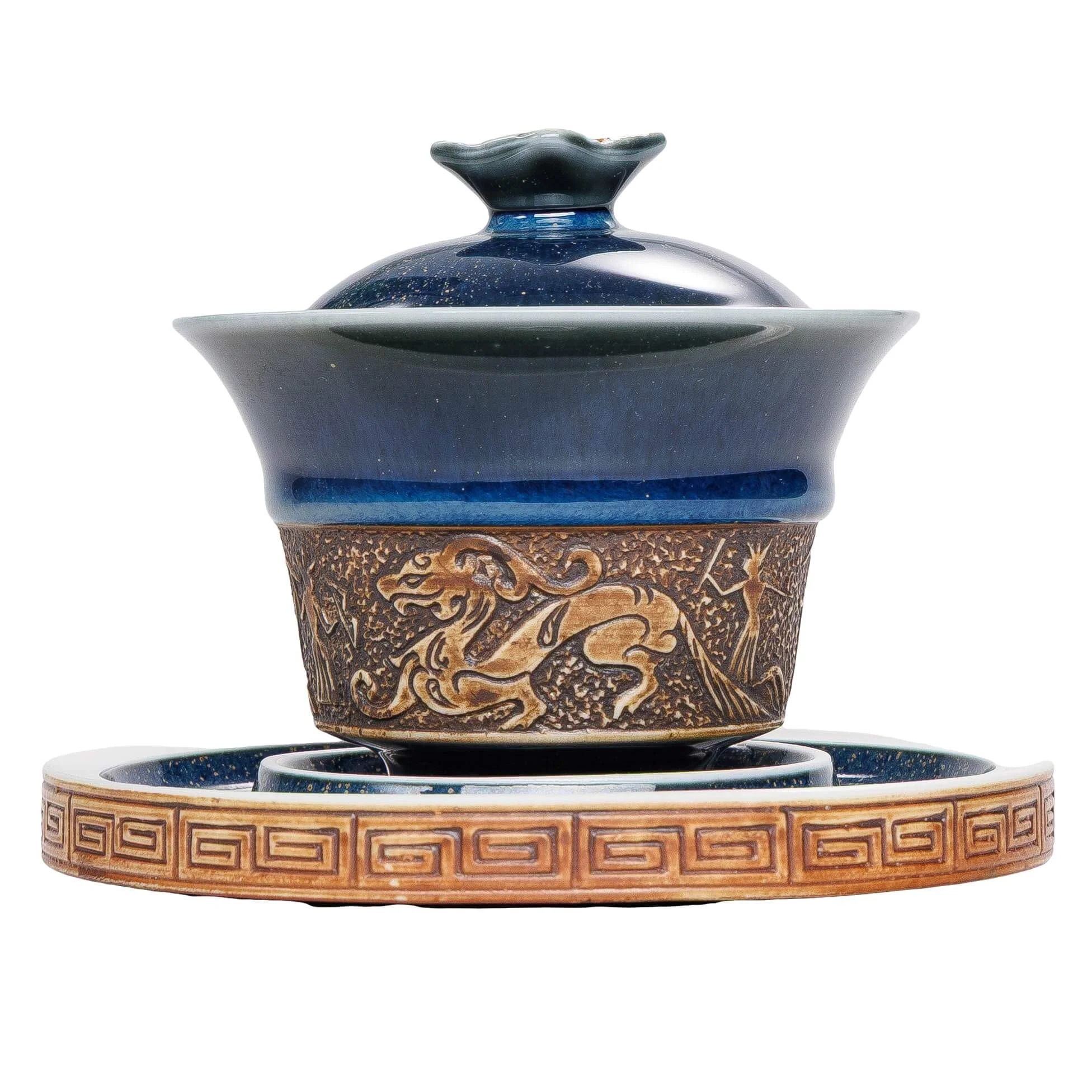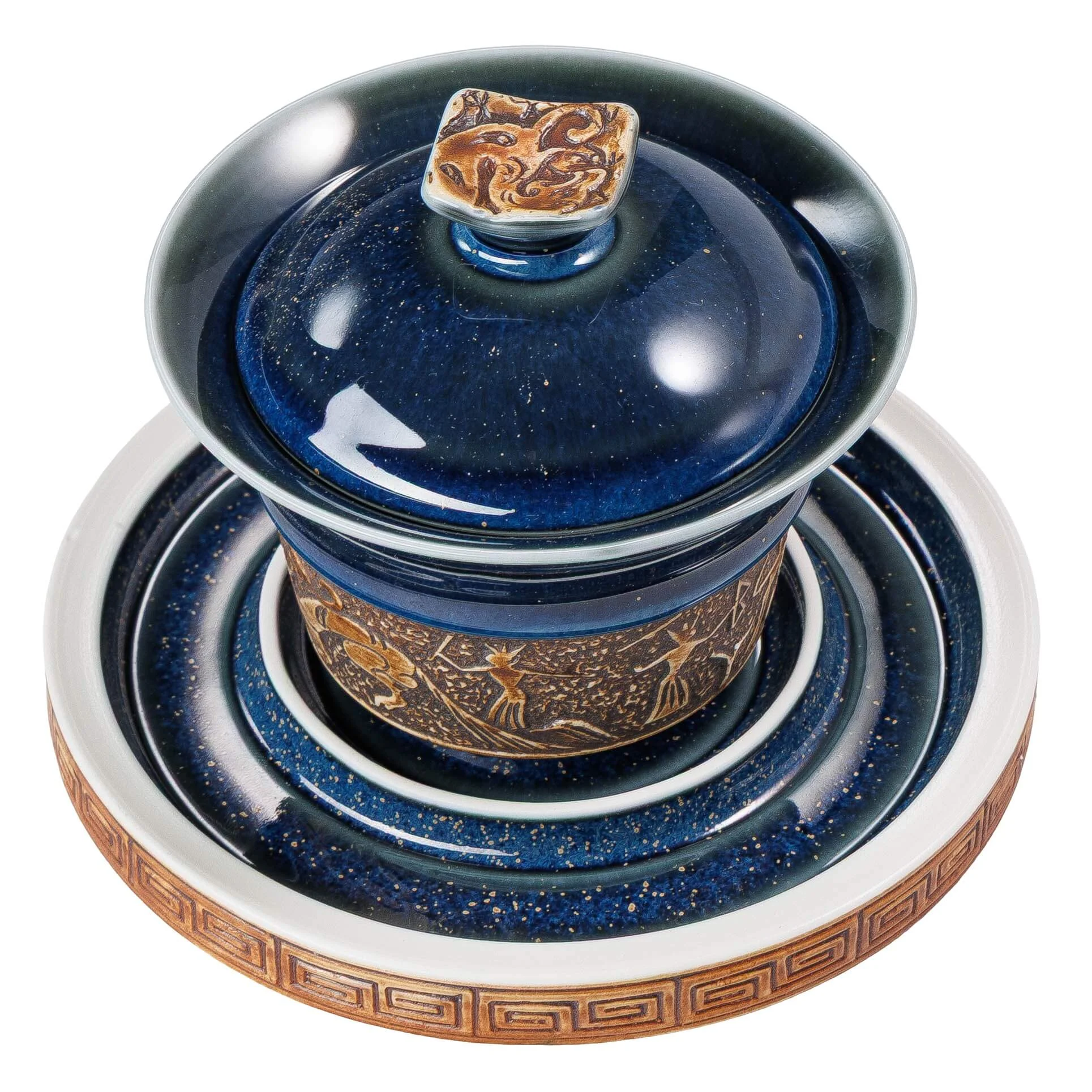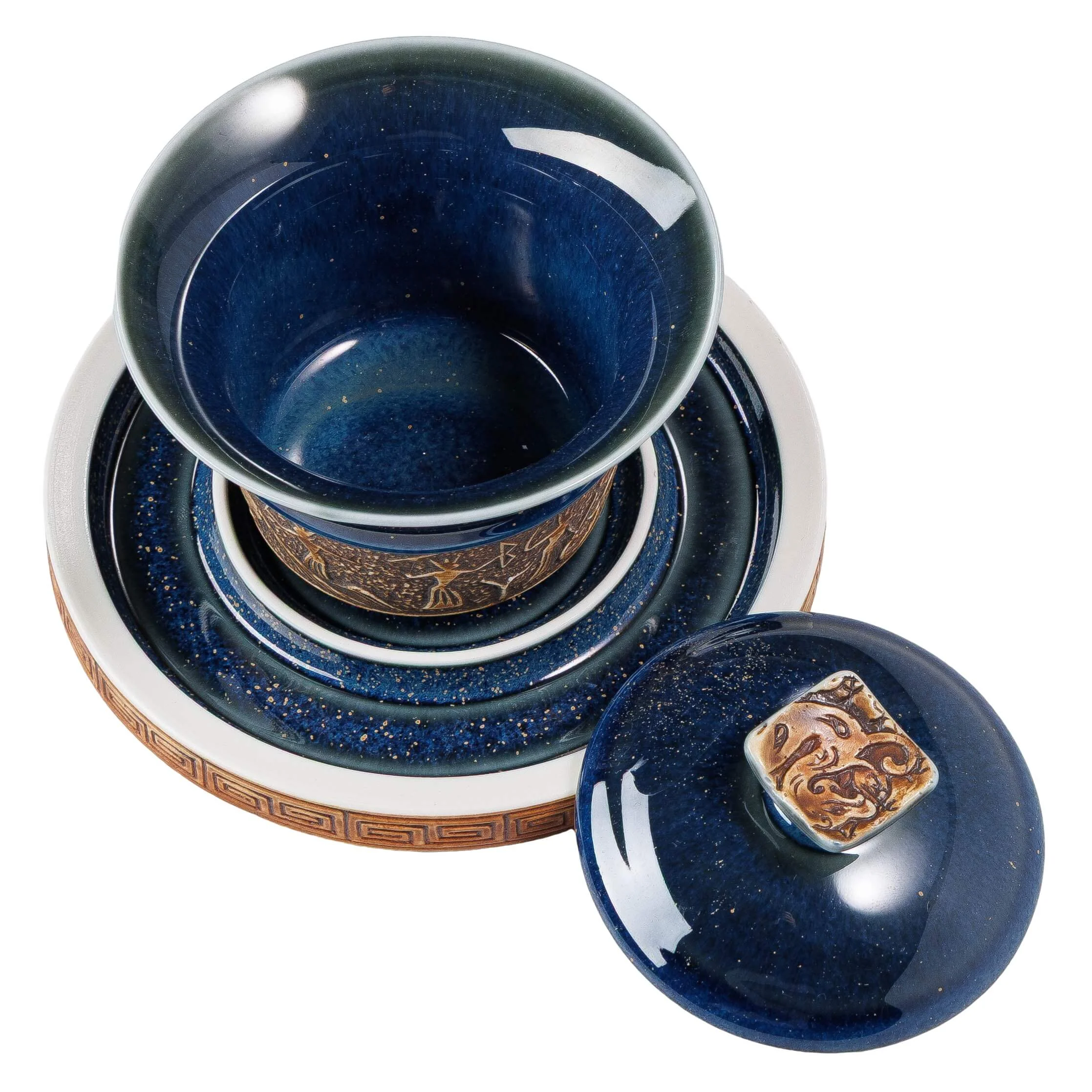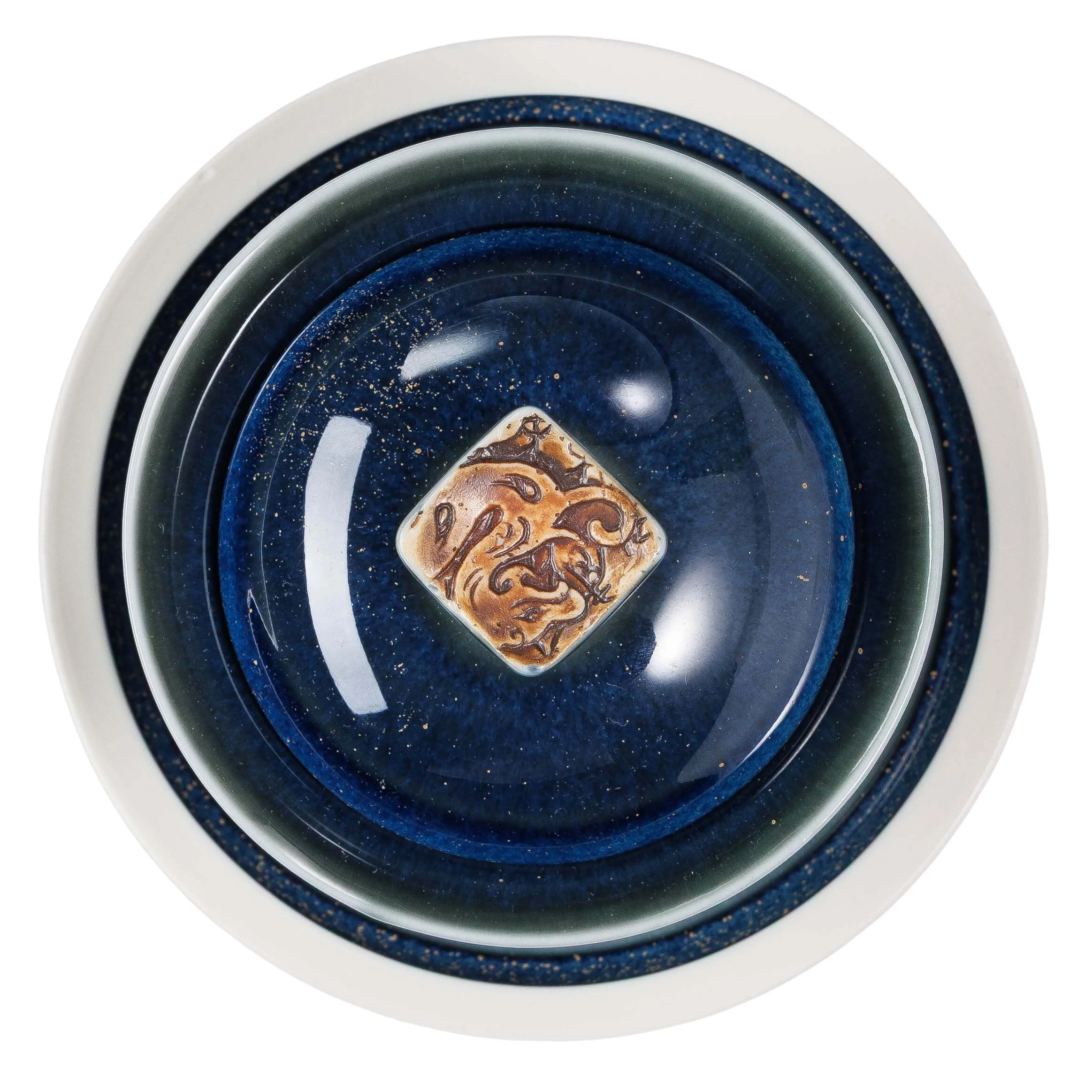 Техника огненного перелива (窑变) создаёт глубину и игру цвета — от тёмно-сапфирового до медного сияния. Пламя оставляет на поверхности следы, словно звёздную пыль, превращая каждую гайвань в неповторимую вселенную. Это результат естественного процесса, который невозможно повторить — каждая «Дорога Огня» уникальна, как шаг на собственном пути.