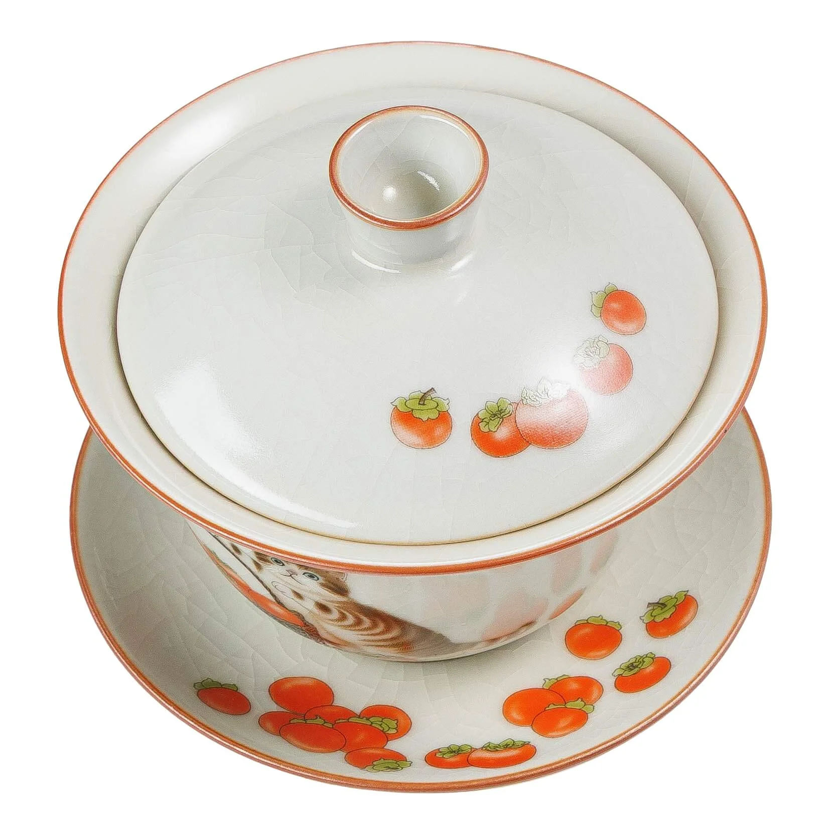 Гайвань 170 мл "Кіт і хурма", кераміка жуяо, шовкографія