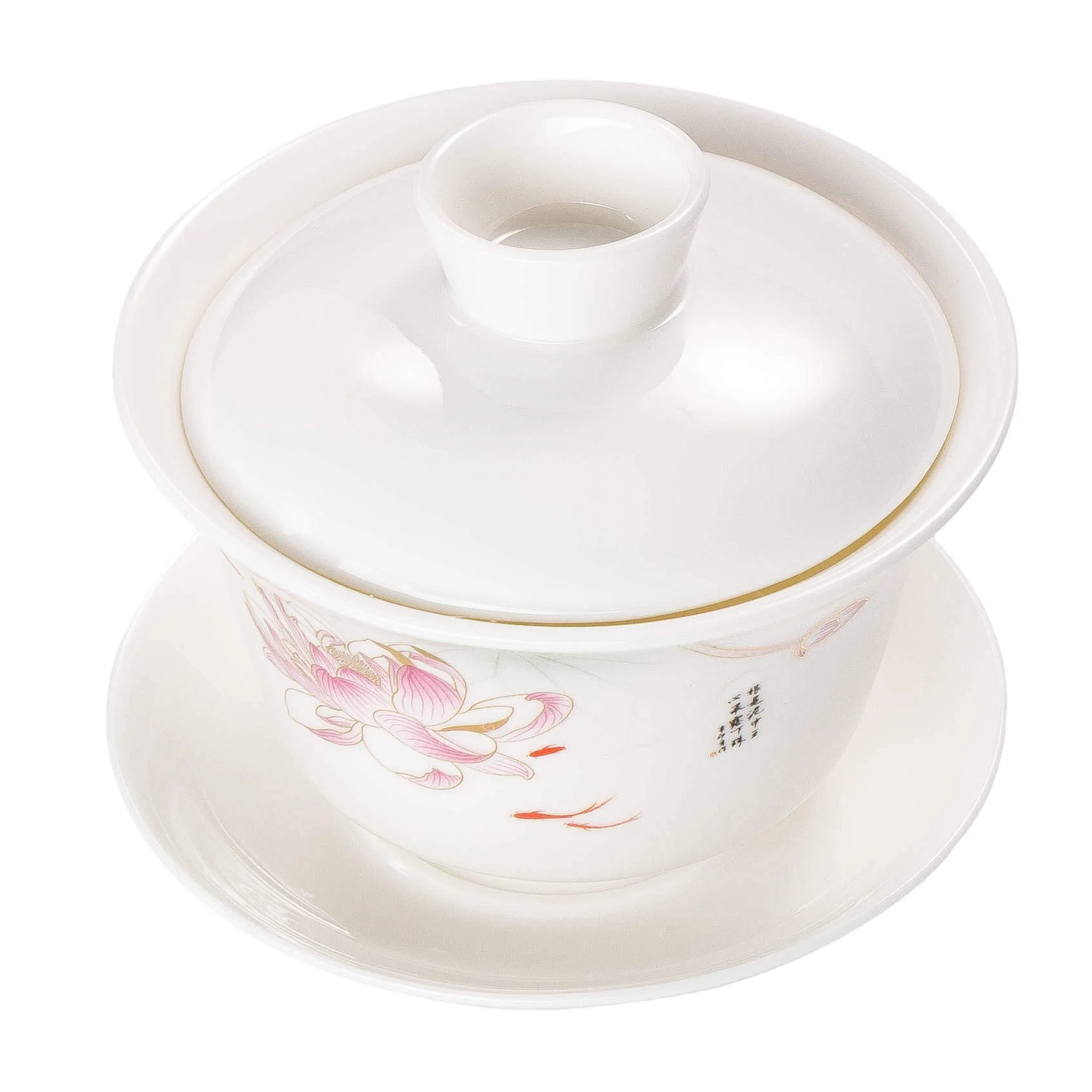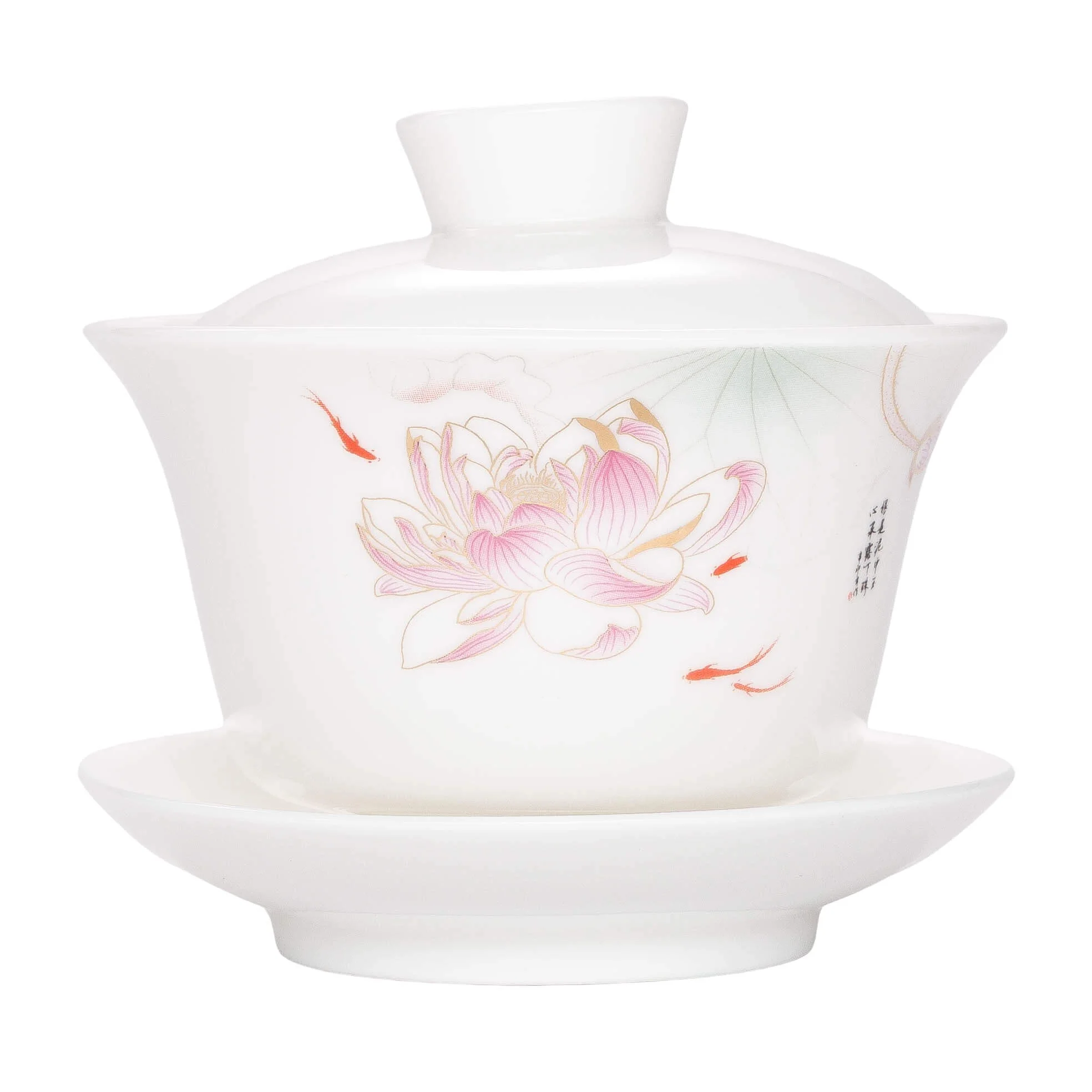 Витончена порцелянова гайвань, малюнок виконаний у стилі традиційного китайського живопису та має глибокий символізм. Лотос — це потужний символ у багатьох культурах, який несе глибокий філософський зміст. Квітка росте з мулу, але залишається ідеально чистою, що символізує шлях душі до просвітлення. У буддизмі він уособлює перемогу духу над почуттями та безмежну мудрість, його колір асоціюється з небом, нескінченністю та внутрішнім миром. Як і водяна лілія, що закривається на ніч і розквітає вранці, він символізує вічне життя та оновлення.