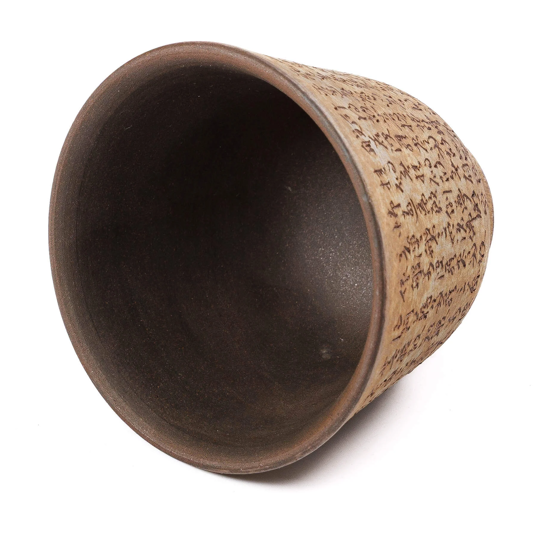 Унікальна піала ручної роботи зі знаменитої цзяньшуйської глини. На її поверхні вручну вирізьблено каліграфію 般若波罗蜜多心经 («Сутра серця») — сакральний буддійський текст, який надає формі глибину змісту.