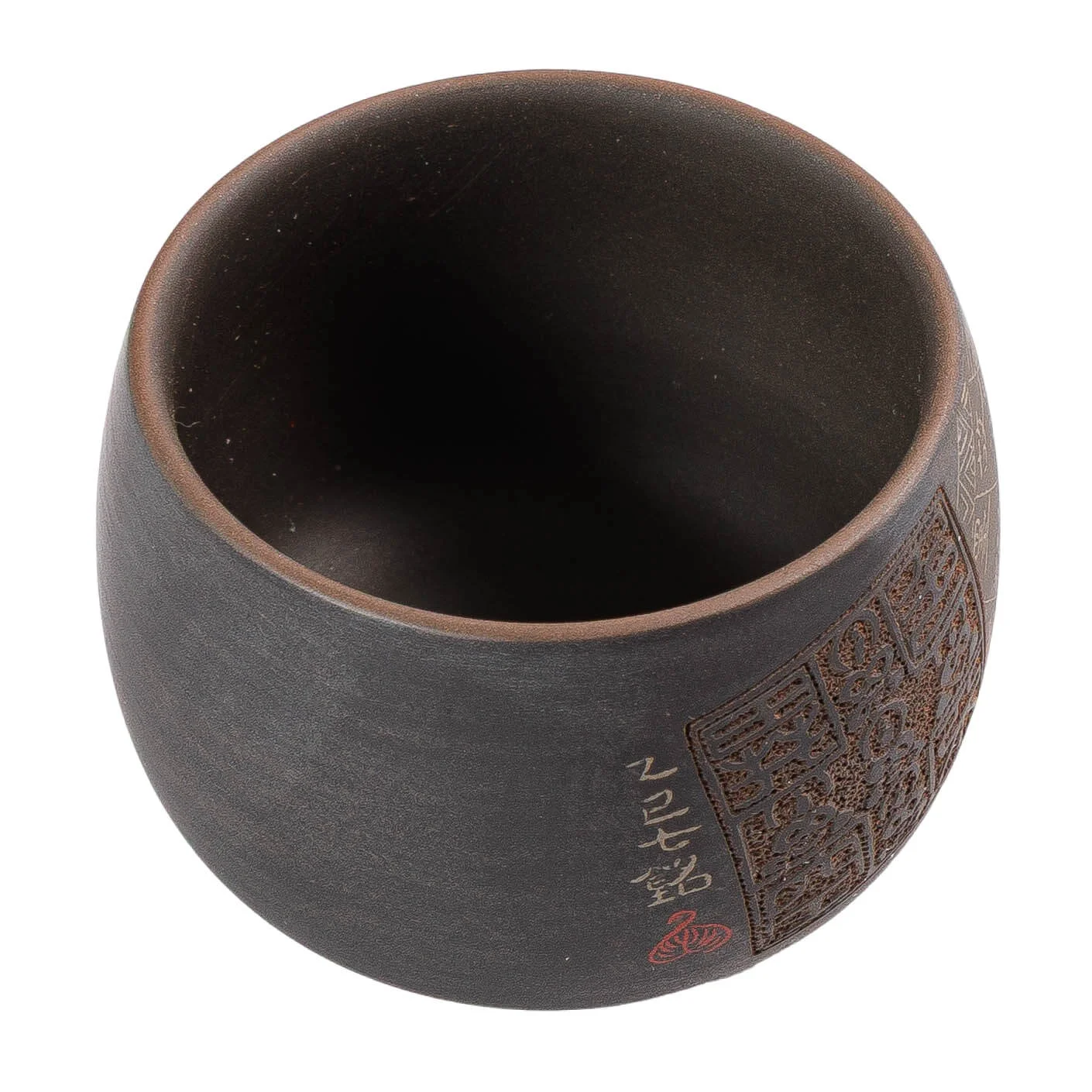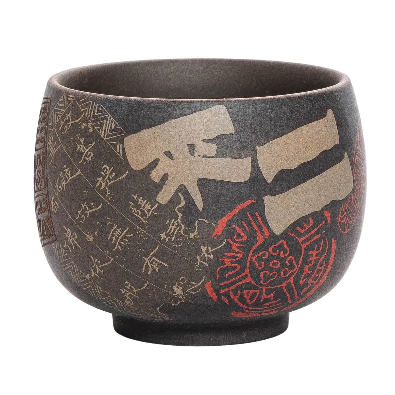 Піала 90 мл «Всесвіт» - цзяньшуйська кераміка ручної роботи. Спокійна форма, виразна фактура та каліграфічні елементи створюють відчуття глибини і внутрішнього простору. Зручно лежить у руці, добре тримає тепло і м’яко розкриває чай.