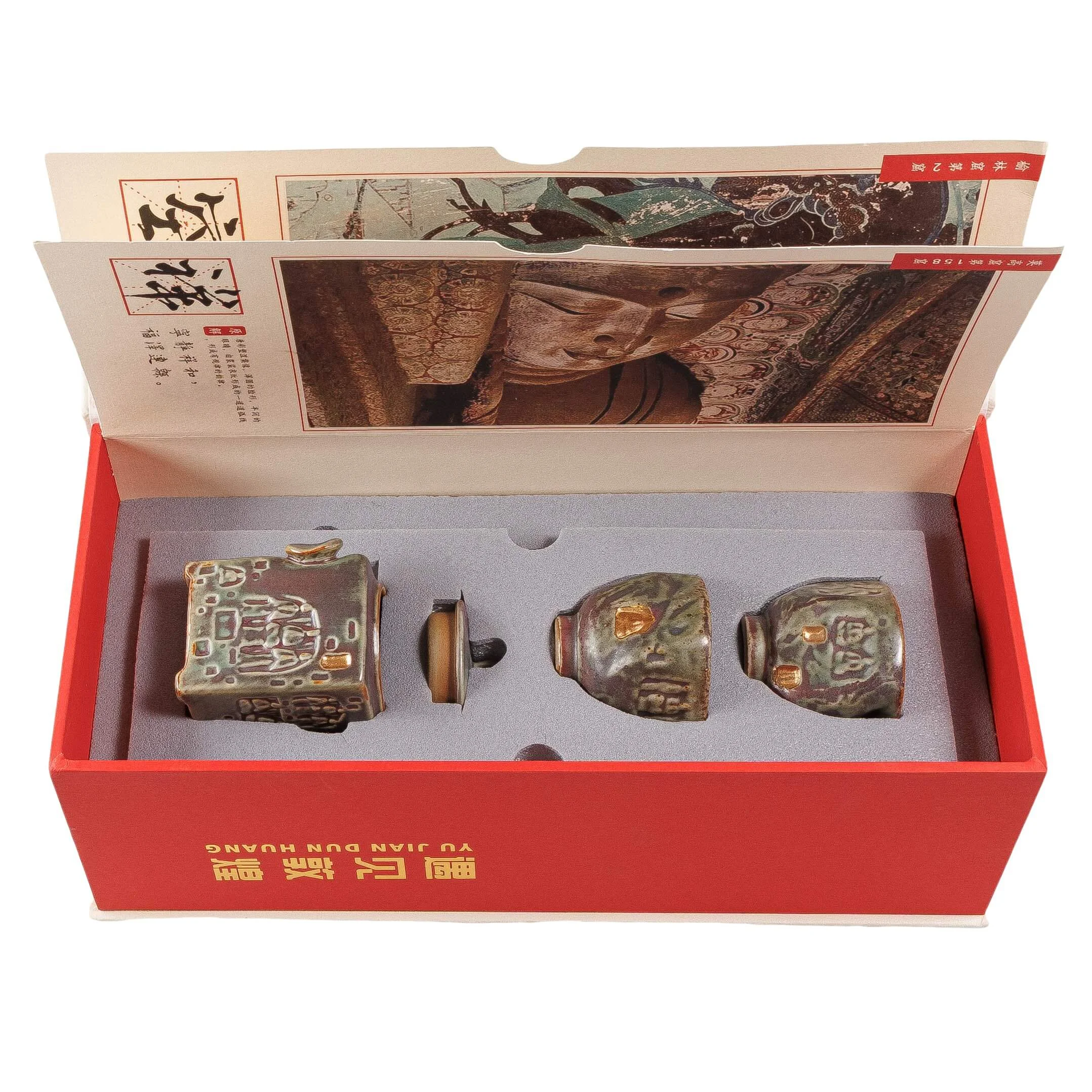 «Таємниці Дуньхуану» — це чайний набір, у якому поєдналися майстерність гончарів, естетика давніх фресок та спокій східної чайної традиції. Його форми та кольори натхнені атмосферою священних печер поблизу стародавнього міста Дуньхуан, де протягом століть зберігалися унікальні розписи та буддійські образи.