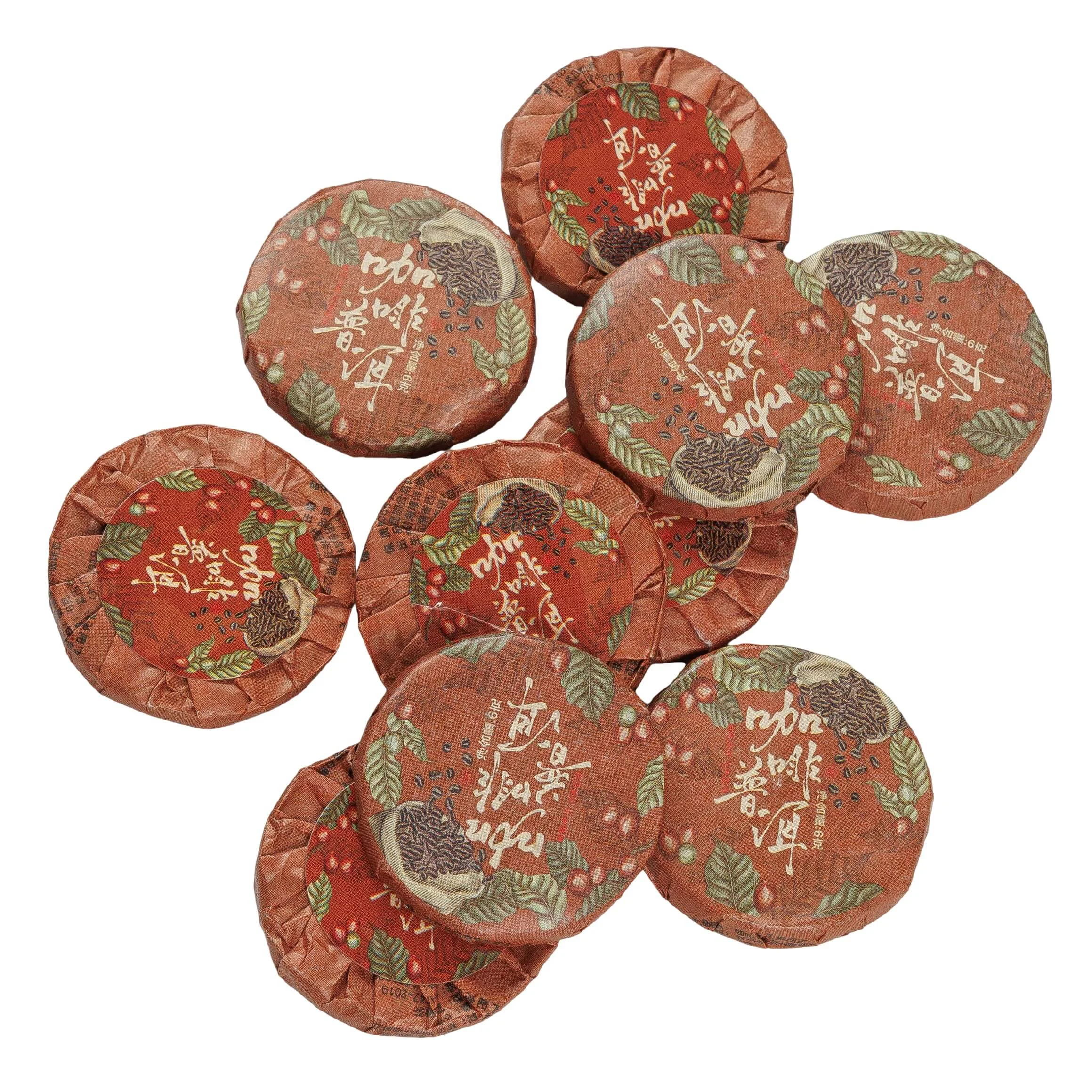 Ароматизований шу пуер з Юньнані з обсмаженими кавовими зернами. М'який, солодкуватий смак і насичений кавовий аромат.