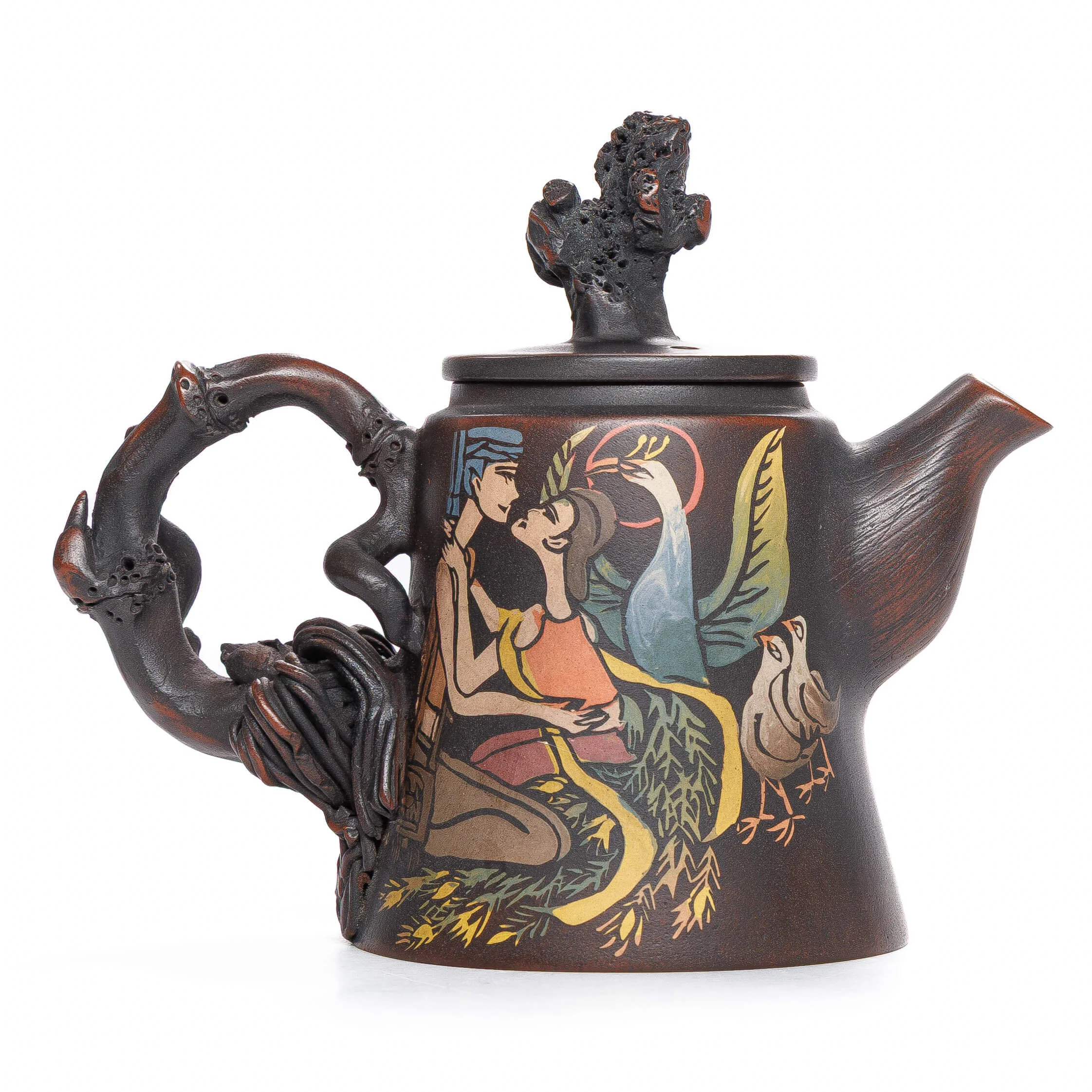 Чайник «Красавица» — это выразительная авторская работа, в которой сочетаются пластика цзяньшуйской керамики, этнический образ и живая декоративная подача. Это не просто посуда для заваривания чая, а предмет с характером, настроением и собственной художественной атмосферой.