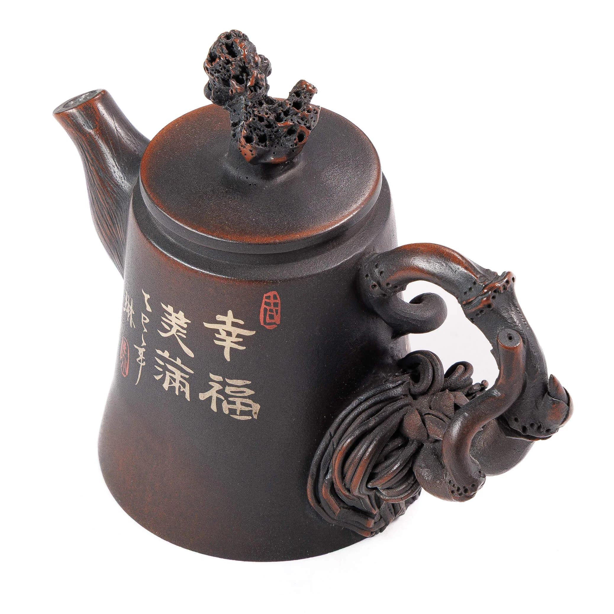 Работы мастера Ма Линь отличаются художественным подходом и вдохновением природными сюжетами. В этом чайнике декоративность не перегружает форму, а подчёркивает её, создавая баланс между функциональностью и эстетикой.