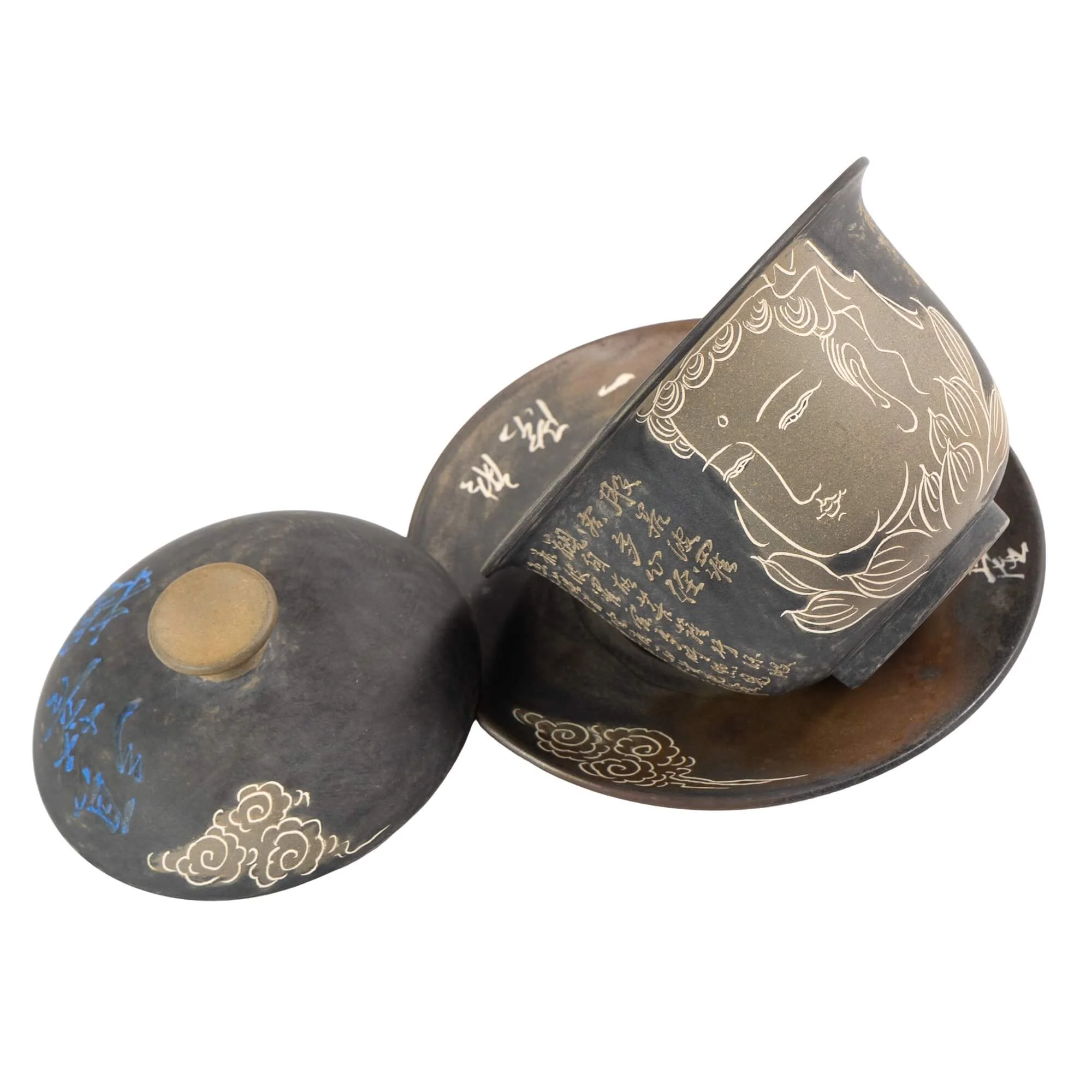 Гайвань 170 мл из цзяньшуйской керамики, мастер Чжан Юэлун. Сдержанная форма, глубокий тон и чистая резьба. Даёт мягкий, собранный настой и хорошо раскрывает тёмные улуны, шэн пуэры и красные чаи.