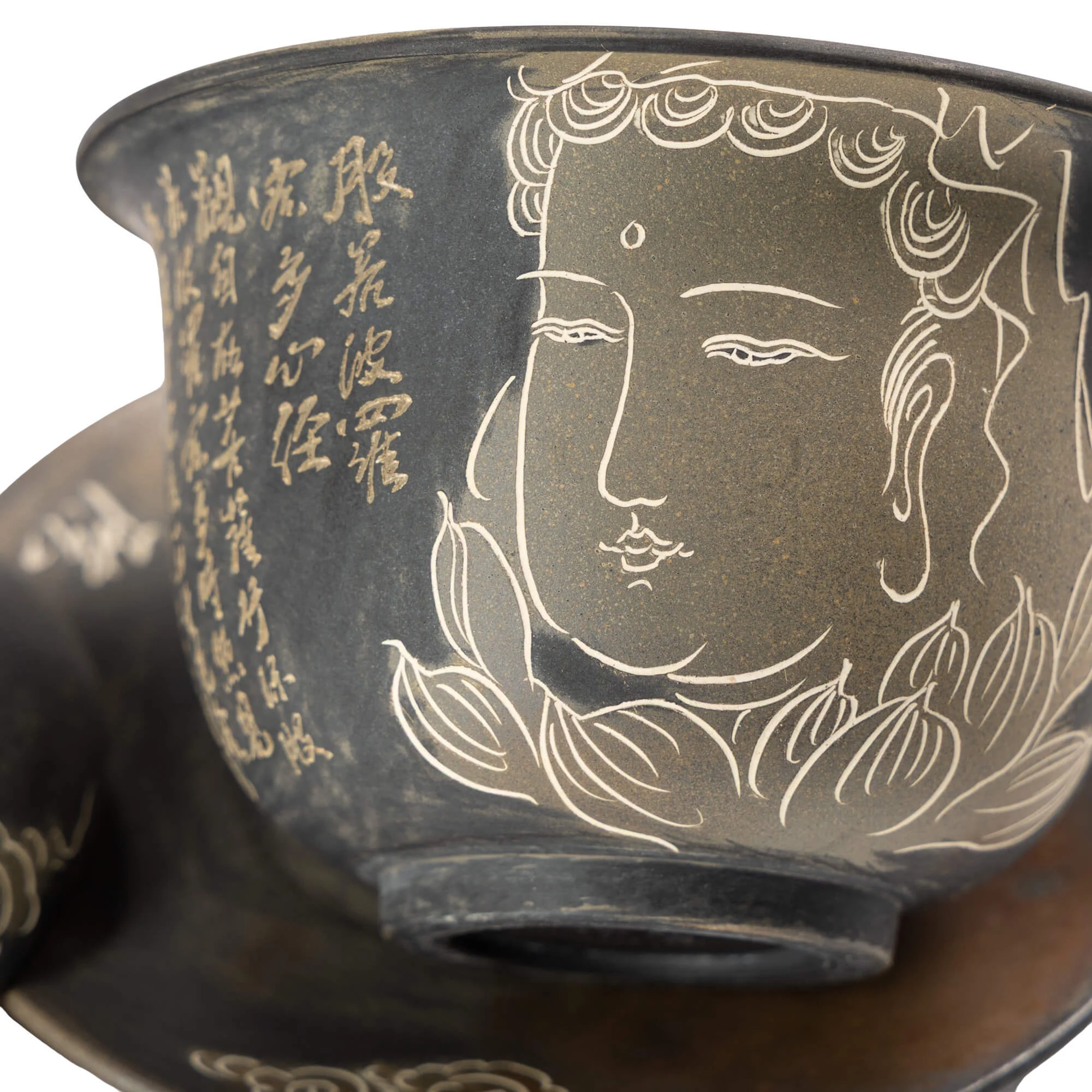 Поверхность выглядит цельно и благородно. Тёмный фон, мягкие переходы оттенков и светлые линии резьбы создают ощущение глубины и объёма. В этой гайвани нет случайных деталей — всё работает на настроение и тактильное восприятие.