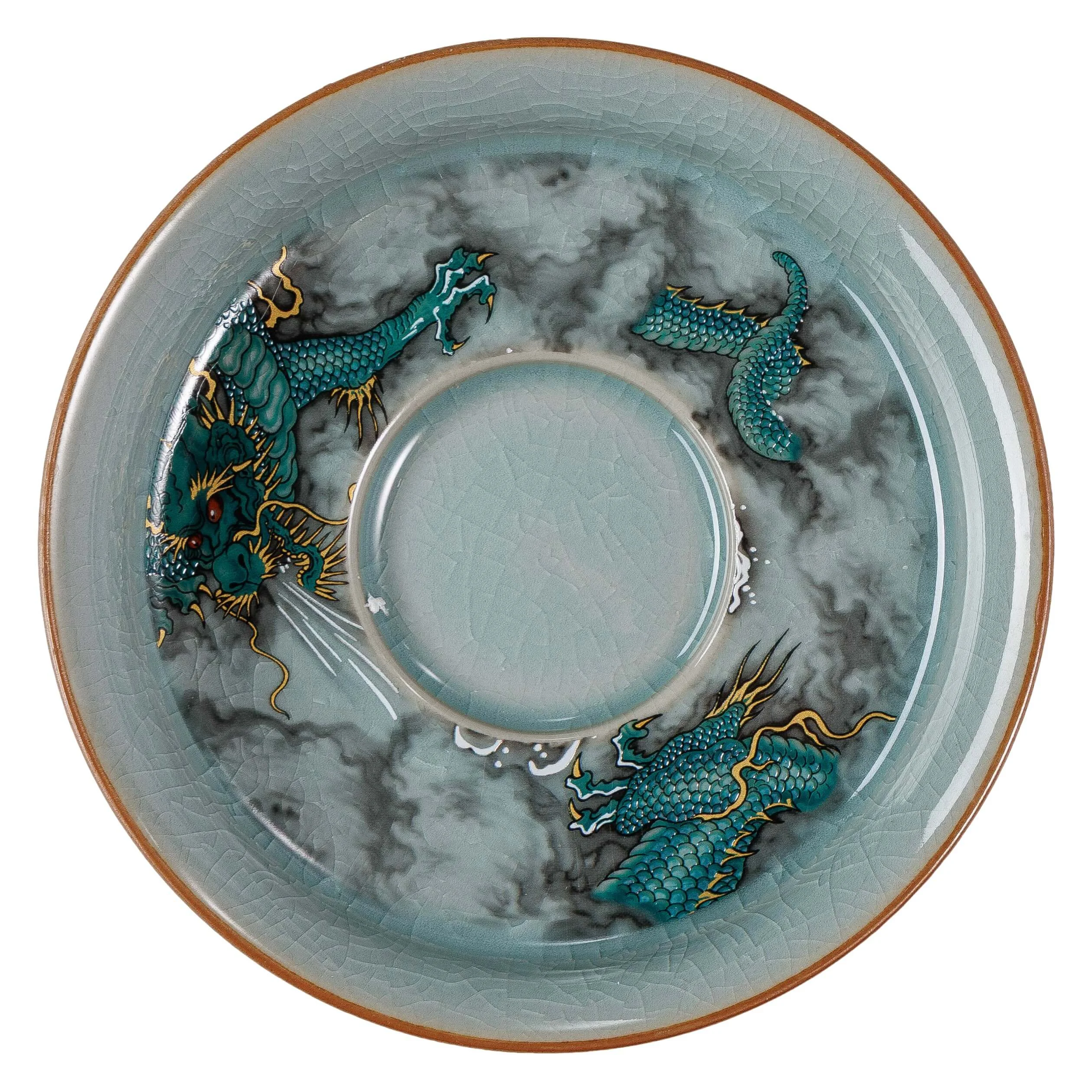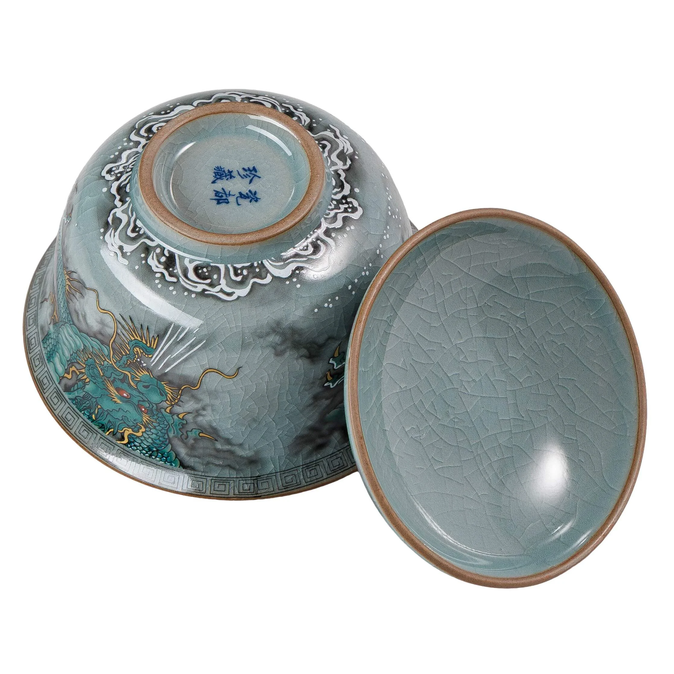 - Гайвань «Мифический дракон» — это сочетание изящного стиля и практичности. Прозрачная глазурь с эффектом «колотого льда» создает естественный узор из микротрещин, который со временем приобретает благородный оттенок от чая.