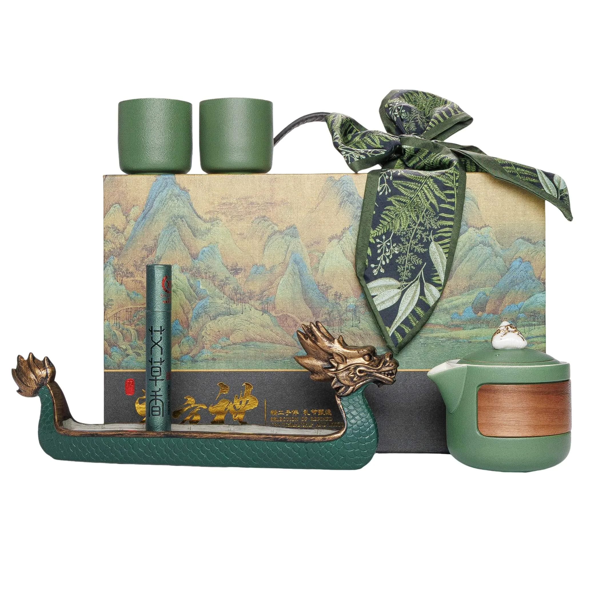 Фестиваль лодок-драконов (端午节) — древний китайский праздник, символизирующий очищение, силу и единство. В этот день аромат полыни наполняет дома, принося здоровье и защиту. Именно этот дух вдохновения и гармонии воплощён в наборе — в форме лодки-дракона, аромате и тёплом ритуале чаепития.