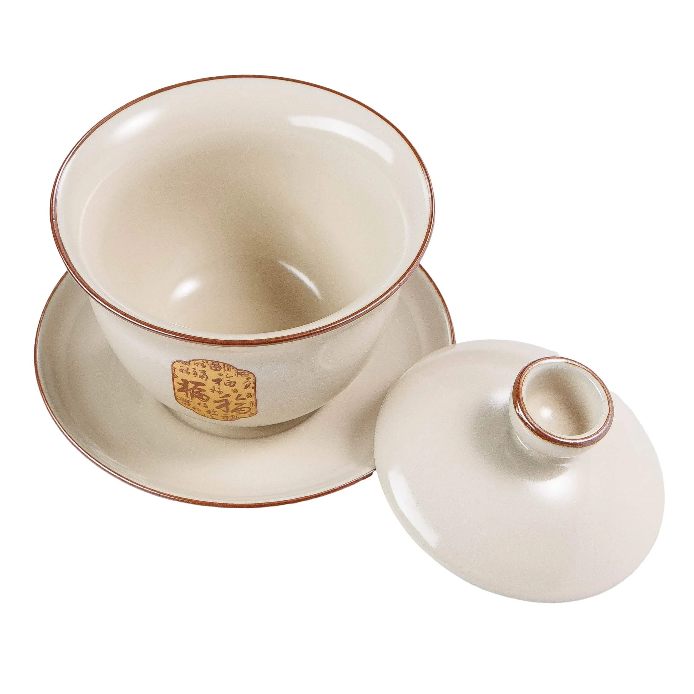 Декор: На посуде изображен китайский иероглиф 福 (Fú), означающий «счастье», «удачу» и «благополучие».