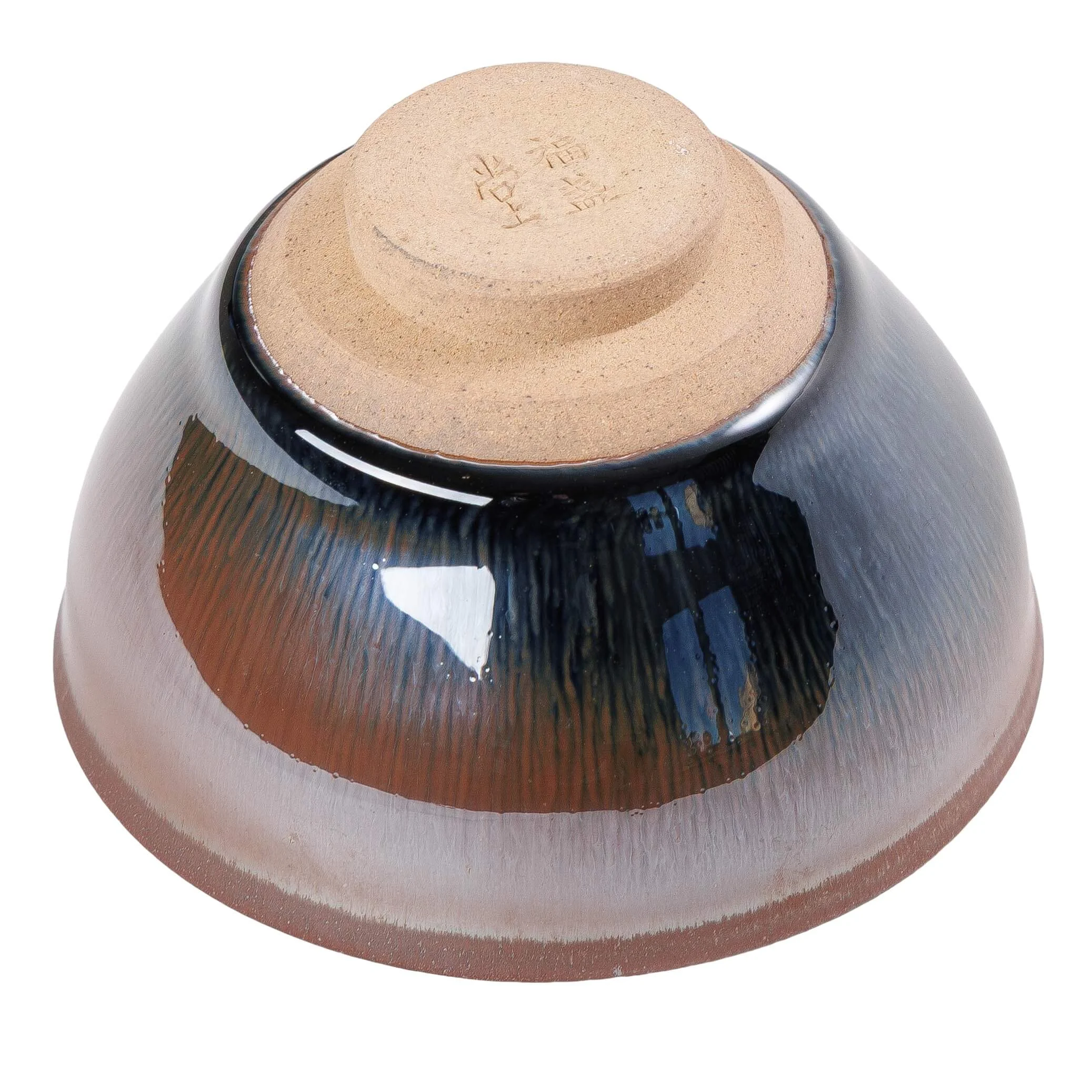 Поверхность пиалы украшена характерной глазурью с переливами темных, медных и золотистых оттенков. При разном освещении узор раскрывается по-разному, благодаря чему каждая пиала имеет свой уникальный рисунок и характер.